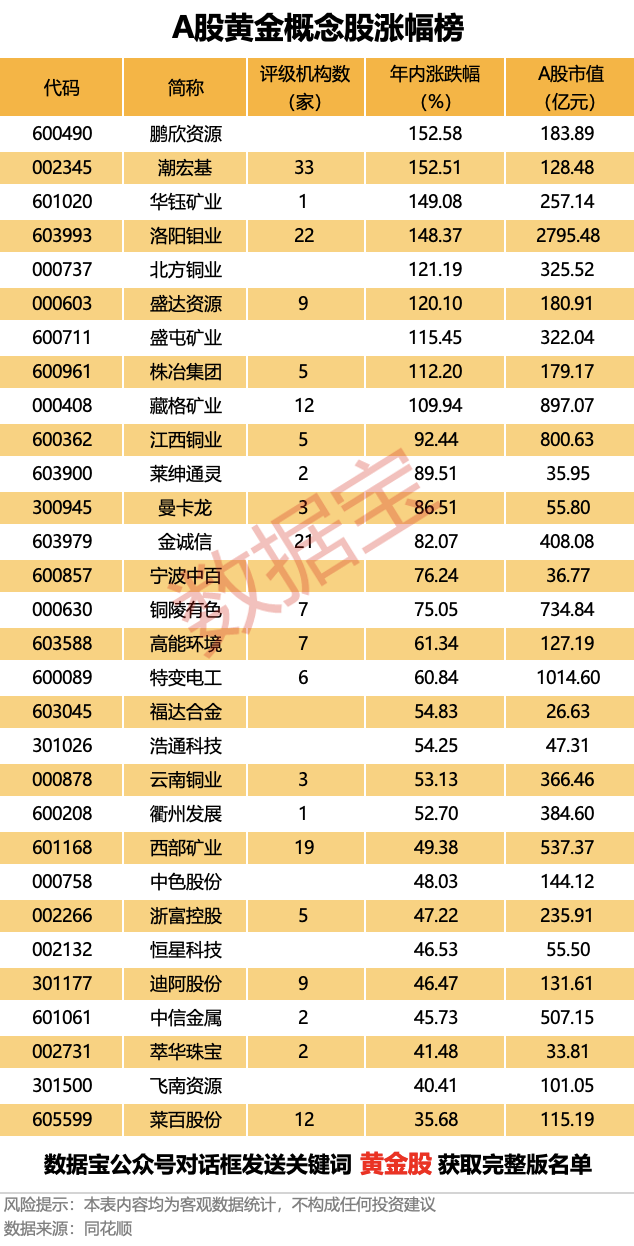 A股黄金概念股涨幅榜出炉A股黄金概念股涨幅榜出炉