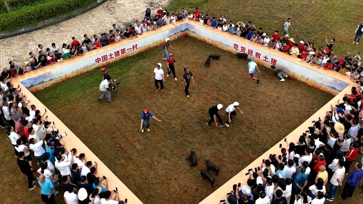 蒙眼抓猪环节同样是趣味横生,在12×12米的围栏内,6头小猪悠闲踱步,10名蒙眼选手仅用4分钟便顺利完成挑战,默契配合引得全场喝彩。