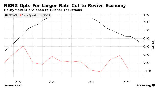 然而,后续公布的数据显示,第二季度国内生产总值(GDP)萎缩0.9%,萎缩幅度是新西兰联储此前预测的三倍,这进一步强化了市场对“需更大力度降息”的预期。